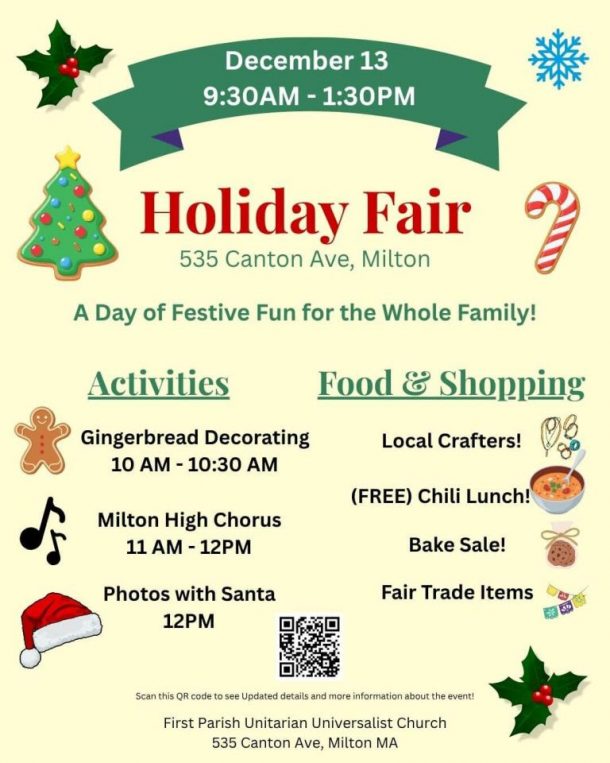 Looking for a way to help this holiday season? The Milton Residents’ Fund housed at First Parish is seeking donations of funds or gift cards, to assist low-income children and adults of all ages in Milton this holiday season. Many of our friends and neighbors in Milton have been especially hard hit with lost income, uncertainty about food & heating assistance, increasing costs, or fewer available social supports, so we are hoping to provide assistance through gift cards to grocery stores, Target, TJMaxx/Marshalls, Amazon or use financial donations to purchase tanks of winter heating oil, prevent electric and gas shutoffs and help with small medical bills or car repairs. Donations in any amount are greatly appreciated and will be passed on directly to a Milton family or individual in need. Donations are tax deductible and can be mailed directly to The Milton Residents’ Fund c/o First Parish Unitarian 535 Canton Ave Milton MA 02186 or dropped in the gray box outside the parish office in the hallway. To make an online donation please email the Milton Residents Fund with an amount you would like to donate and Noreen can send a donation link. If you, or anyone you know in Milton, is experiencing a financial crisis and needs assistance with rent, utilities, or unpaid medical bills please call (617) 696-1214 or email with questions to